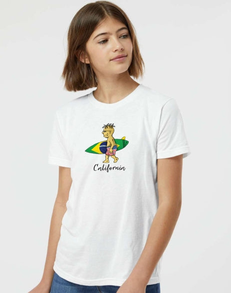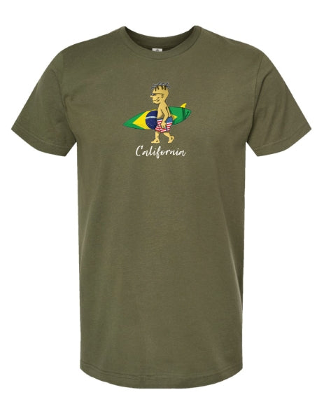 This cartoon unique print shows the passion of California surf life style and Brazilian American pride. This t-shirt is made with very softy combed cotton fibers to removed impurities and create a noticeably finer and more luxurious quality. Heather colors are cotton/polyester mixed.